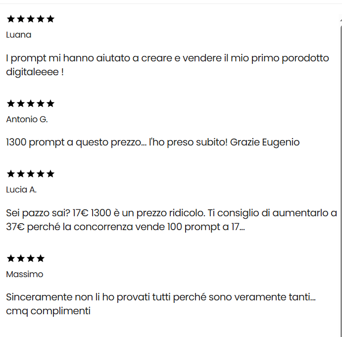 Crea l'impossibile con questa guida di oltre 1300 Prompts (1000 + 300 BONUS). I prompts sono divisi in 10 categorie... Clicca in basso per saperne di più